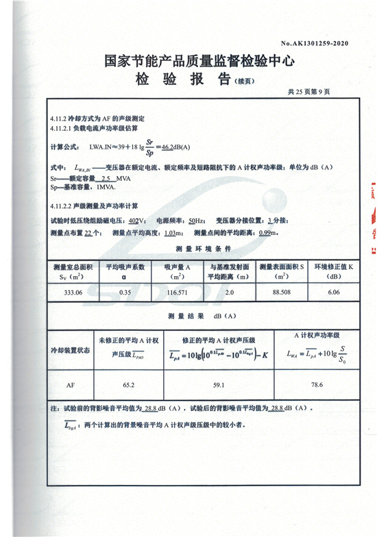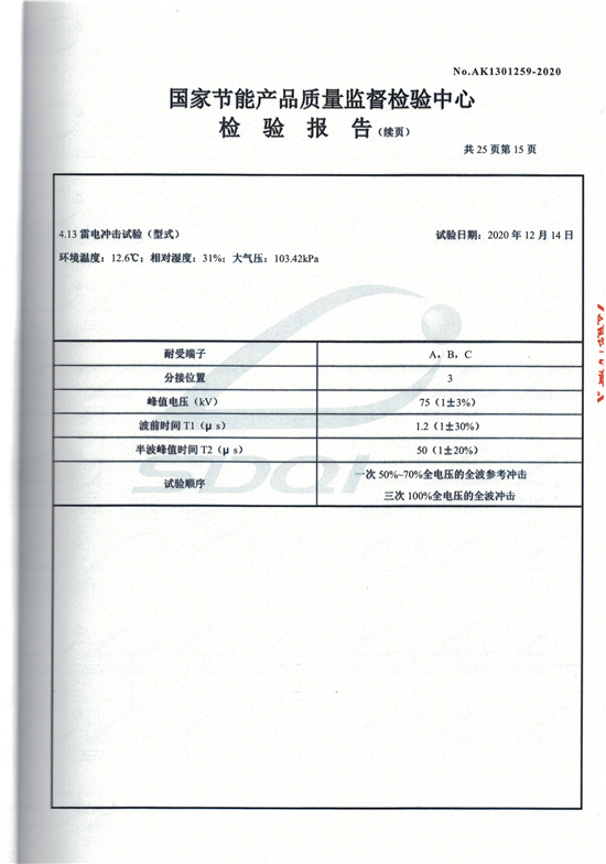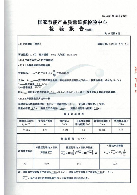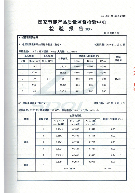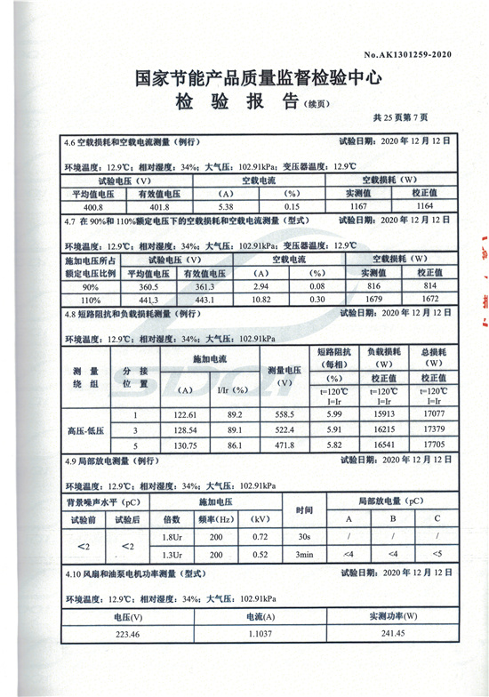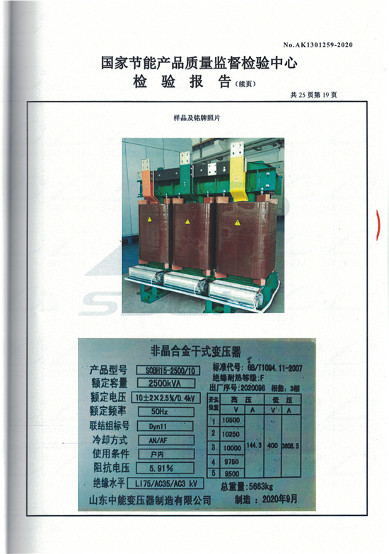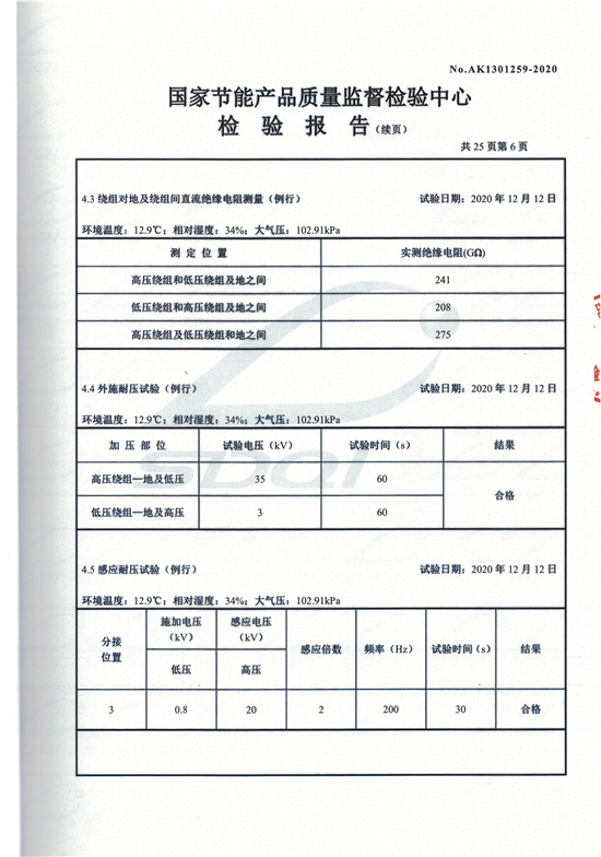 SCBH15非晶合金干式變壓器檢驗(yàn)報(bào)告